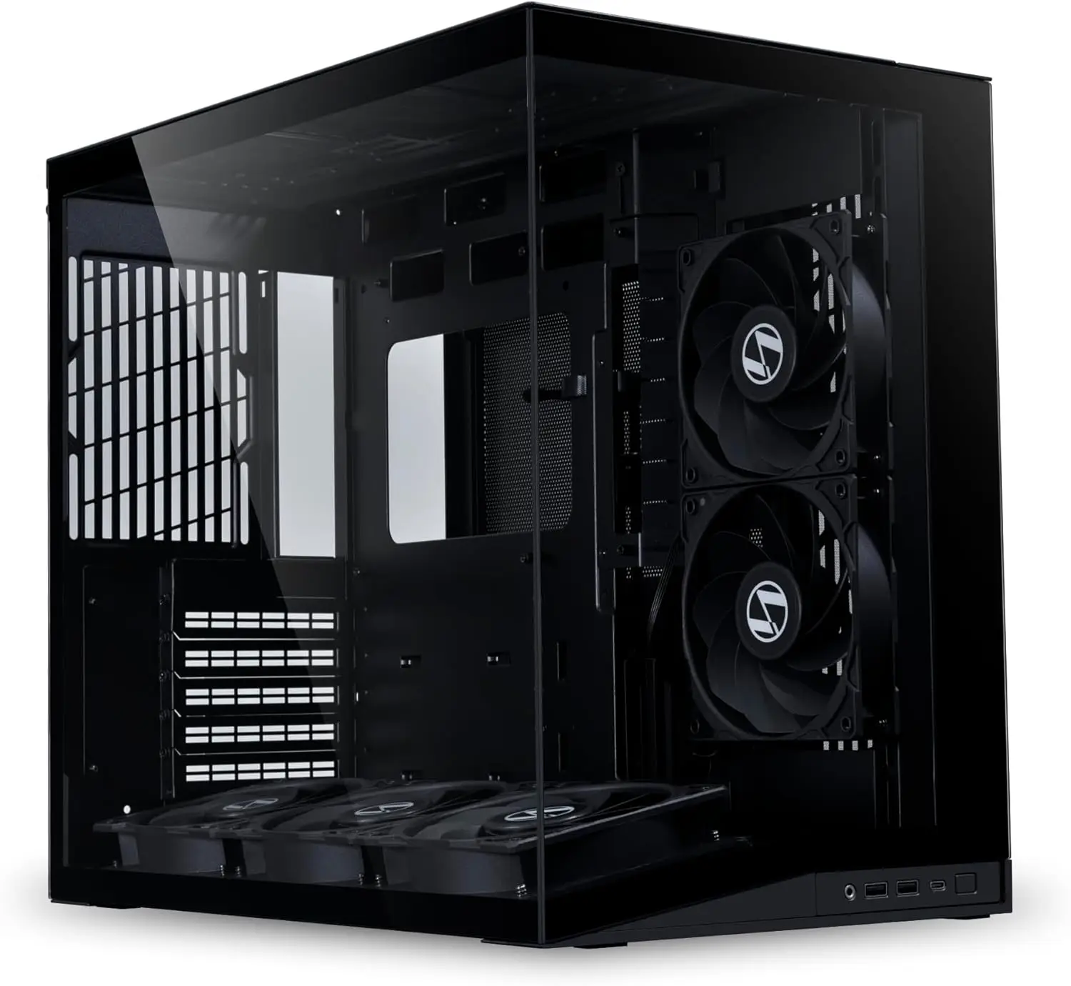 This compact ATX mid-tower computer case is designed to enhance your PC build with superior airflow and a sleek aesthetic. Key features include: 1. **Pre-installed Cooling System**: Comes with 5 pre-installed 120mm reverse blade fans positioned at an optimal angle for efficient cooling, ensuring your components stay cool during intense use. 2. **Optimized Airflow Design**: Features a 10° slanted bottom design that enhances direct cold air intake and significantly improves GPU cooling performance, reducing heat buildup for better system stability. 3. **Compact and Stylish Build**: The protruded mesh side panel accommodates full-sized ATX power supplies while maintaining a small footprint. Pillar-less tempered glass front and side panels provide an unobstructed panoramic view of your internal components, showcasing your setup with elegance. 4. **Versatile Motherboard Compatibility**: Supports standard ATX, M-ATX, and Mini-ITX motherboards, specifically optimized for ATX Back-Connect models to ensure easy installation and compatibility with various builds. 5. **Enhanced Support and Organization**: Equipped with horizontal and vertical GPU anti-sag brackets to provide robust support for heavy graphics cards, reducing strain on the motherboard. Special brackets for the 24-pin motherboard cable help maintain a tidy layout, keeping cables organized for a clean look. 6. **Durable Construction**: Made from high-quality materials in a classic black finish, this case offers durability and style to complement any gaming or workstation setup. Ideal for gamers, content creators, and PC enthusiasts seeking a reliable case that combines performance with visual appeal.