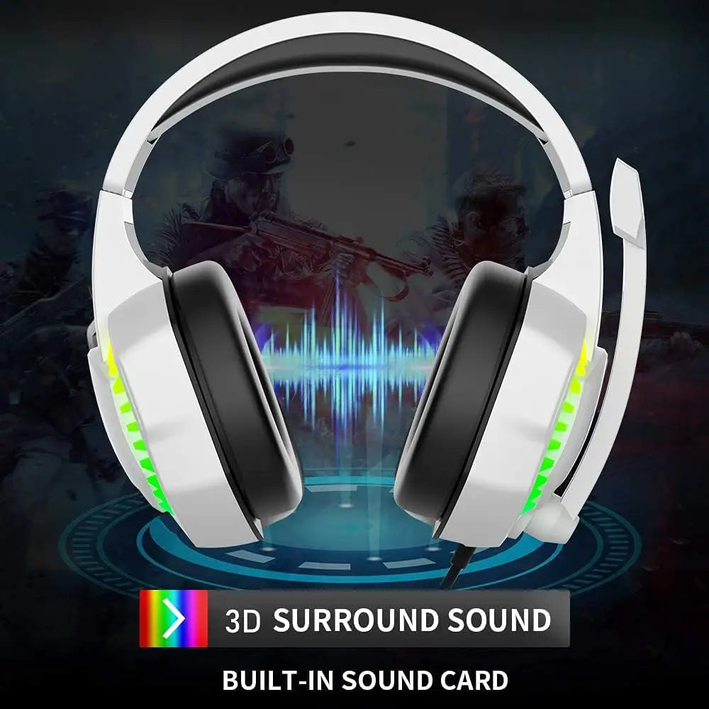 【RGB Backlit Gaming Headset】This high-sensitivity wired gaming headphones has excellent 3D stereo surround sound and cool RGB lights. The adjustable noise reduction mic makes the sound transmission more accurate, clear and smooth, allowing you to enjoy games and music happily. 3.5mm wired backlit earphones use soft protein cotton material to make the earmuffs comfortable to wear. Adjustable headphone strap, suitable for most players. (2 in 1 transfer line included).