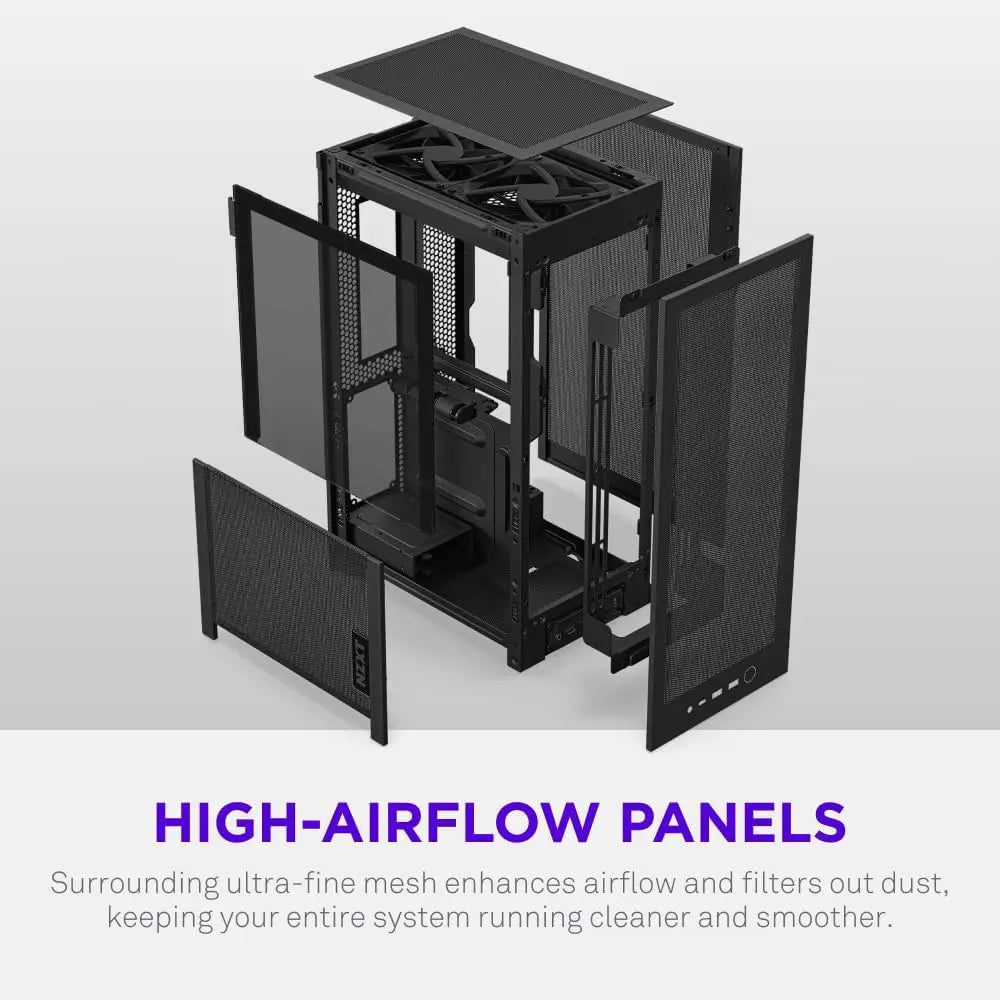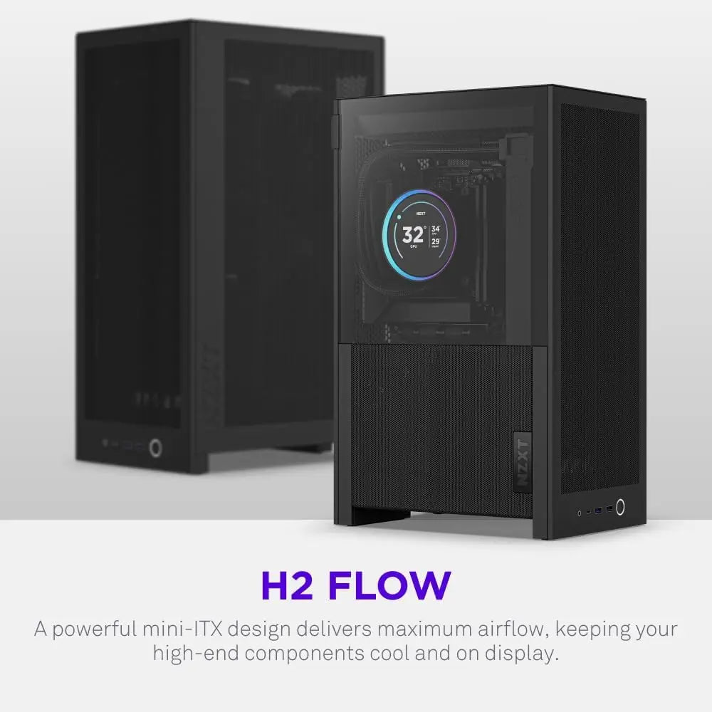 Discover this compact and high-performance Mini-ITX PC case designed for seamless builds and optimal cooling. Key features include: 1. **Efficient Cooling Design**: Hybrid glass-and-mesh side panel showcases your setup while supporting up to a 280 mm radiator for sustained thermal management, ensuring components stay cool during intense use. 2. **Compact Yet Powerful**: With a 20.7 L footprint smaller than a sheet of paper, this case accommodates most GPUs up to 331 mm, delivering high-end performance in a space-saving form factor ideal for small desks or setups. 3. **Enhanced Airflow System**: Ultra-fine mesh panels on multiple sides maximize fresh air intake and filter dust, keeping internal components cleaner and maintaining consistent performance over time. 4. **Easy Installation Process**: Tool-less panels and integrated cable routing with Velcro straps simplify assembly, allowing for a clean and organized interior without hassle, perfect for both beginners and experienced builders. 5. **Ready-to-Use Performance**: Includes a premium PCIe 5.0 riser cable for full-bandwidth vertical GPU mounting and dual pre-installed fans for immediate exhaust cooling, enhancing aesthetics and functionality right out of the box. This PC case combines style with practicality, offering robust airflow, compatibility with modern components, and user-friendly features to elevate your computing experience.