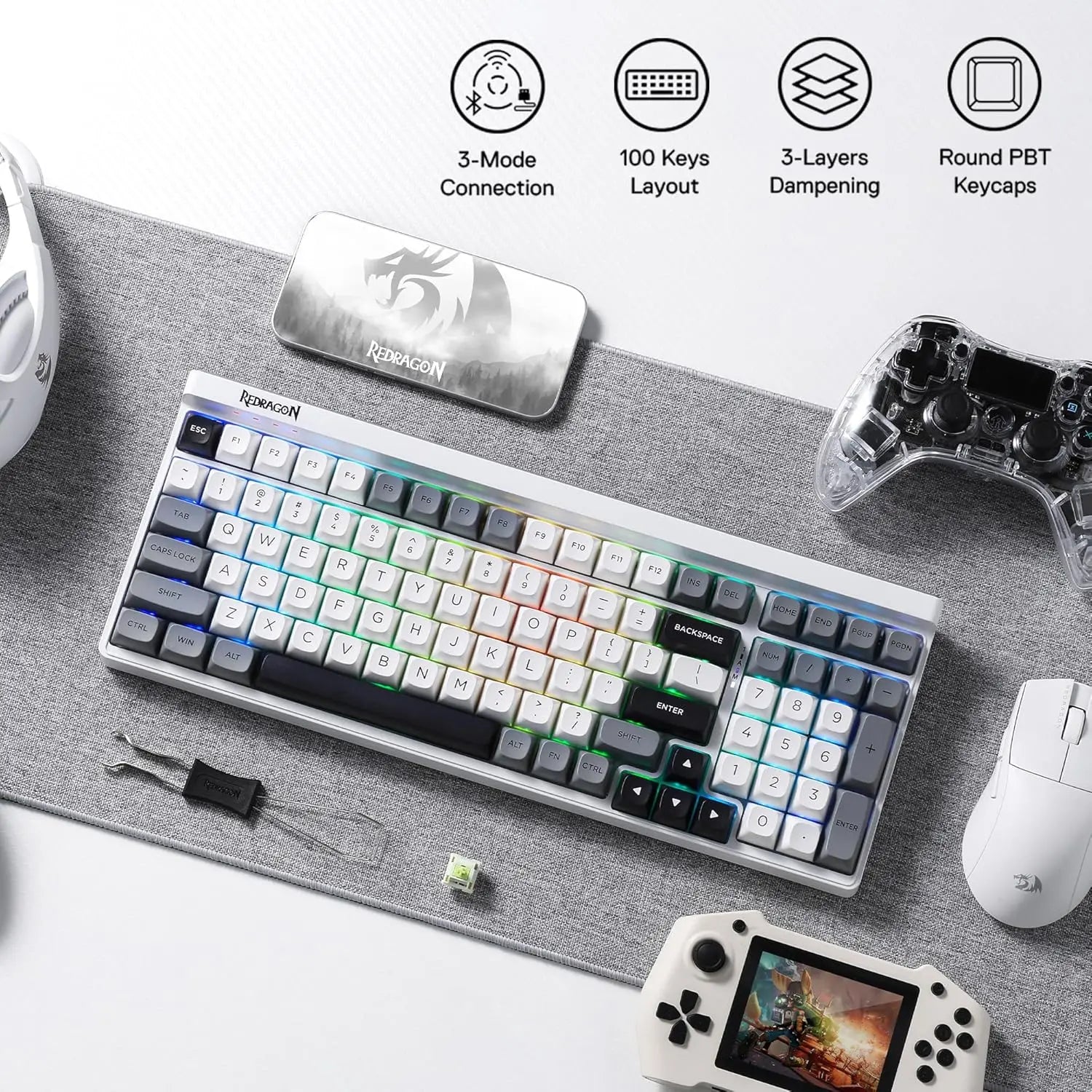 3-Mode Connection - Geared with Redragon advanced tri-mode connection technology, USB-C wired, BT 3.0/5.0 & 2.4Ghz wireless modes which make the user experience upgraded to another level in all fields.