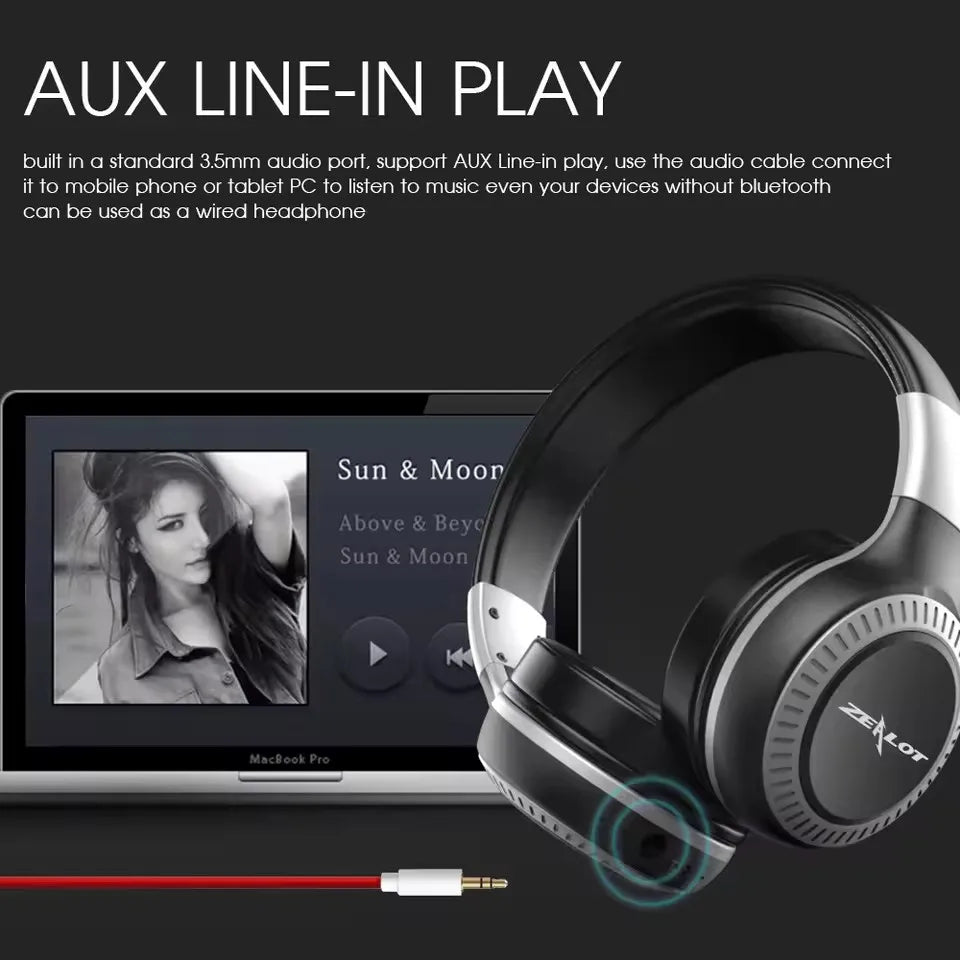 6. the headphone has a standard 3.5mm audio jack, you can use 3.5mm audio cable connect with headphone to listen to music even your phone don't have bluetooth function or the headphone's battery run out.